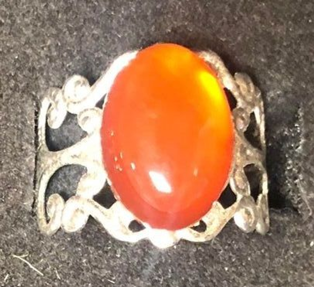 cornaline (bague baroque argentée)