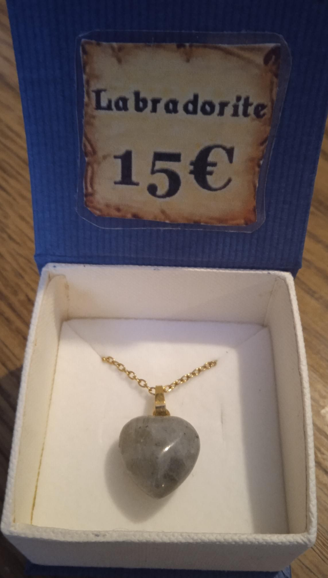 labradorite (pendentif coeur avec chaîne dorée)