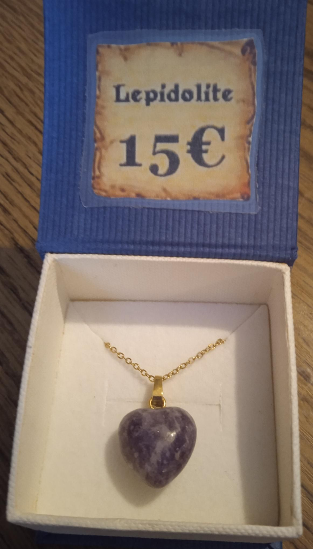 lépidolite (pendentif coeur avec chaîne dorée)