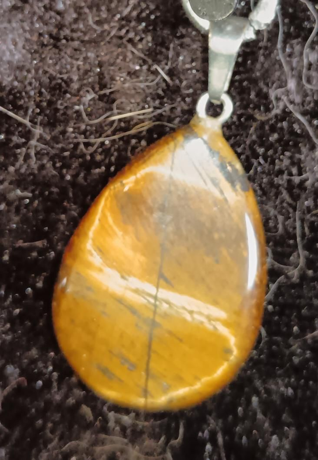 Pendentif en oeil de tigre. Oeil de tigre : courage, confiance en soi, protection