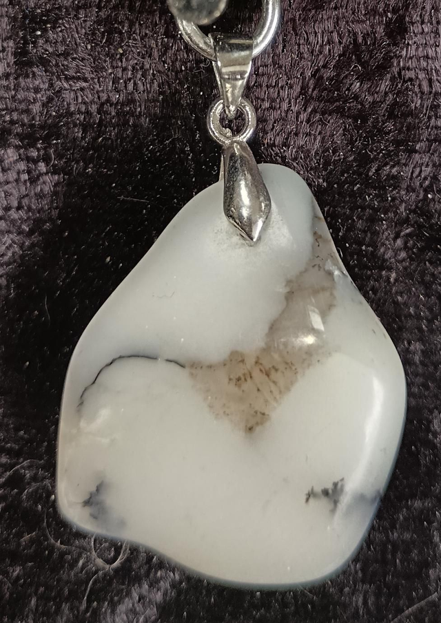 Pendentif en opale à dendrites (merlinite). Opale à dendrites : reins, sang, mémoire...