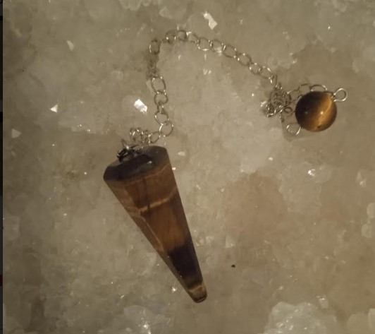 Pendule oeil de tigre facetté en pointe. Oeil de tigre: courage, confiance en soi, protection...